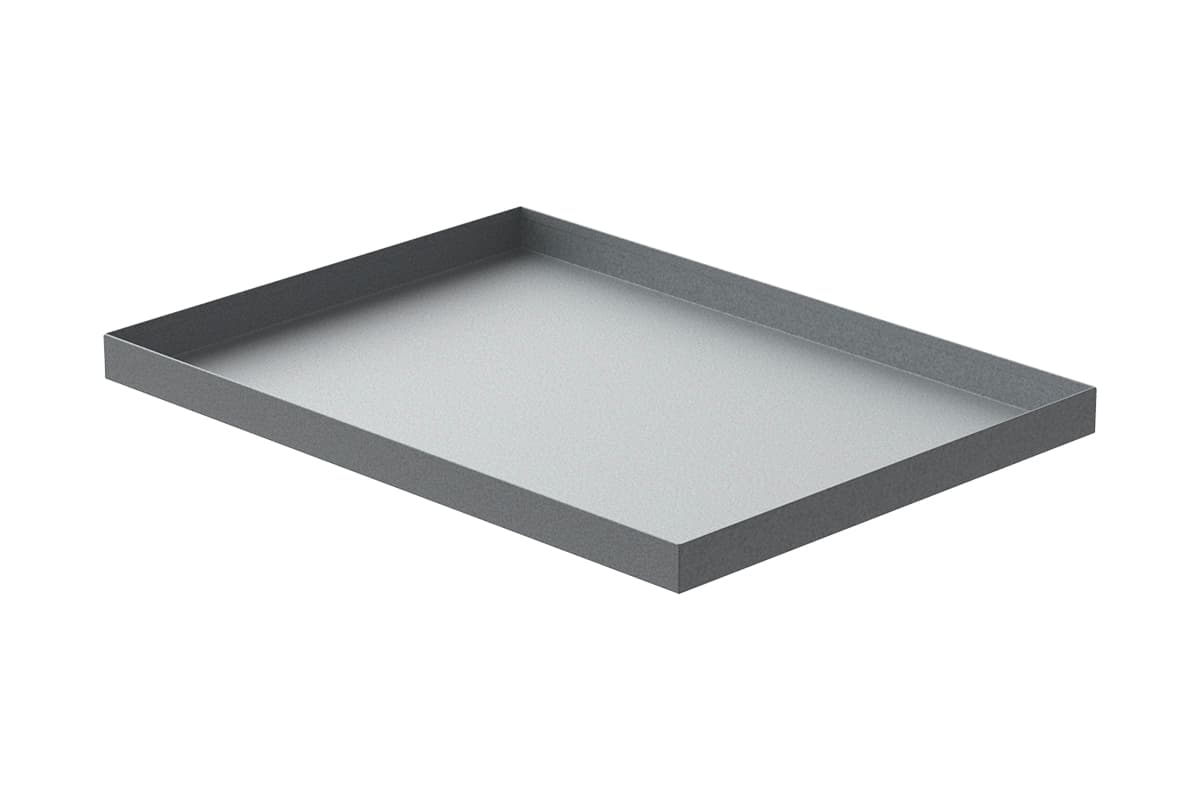 Spill containment for AC condensate is an important measure for keeping your home or office free from any issues. The continued dripping of condensate from an AC unit will cause significant damage over time. This product is made out of galvanized steel to provide corrosion resistance. Our Galvanized AC Drip Pan is made with fully welded corners and hemmed edges for strength. Material options are stainless, galvanized, aluminum or cold rolled steel. If your situation has a constant flow requirement click the Request a Quote link below to get information on a custom tray.