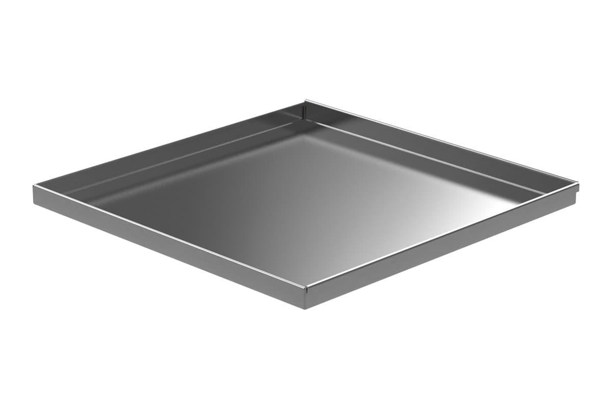 This Assembly Drip Pan is made out of stainless steel for superior corrosion resistance. This is an excellent spill control system when a larger containment footprint is desired and where the environment or the spill fluid is tough on metal. This product is is made with fully welded corners and hemmed edges for added strength. Material options are stainless, galvanized, aluminum or cold rolled steel. If your situation has a constant flow requirement click the Request a Quote link below to get information on a custom tray.