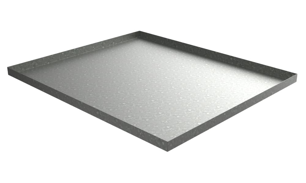 In a manufacturing environment leaking fluids such as oil can be reclaimed and recycled through the machines. The catch pan allows for clean and efficient reclaiming of the oil leaked from any system. It is also pretty good at catching oil during changes and maintenance operations. Our Oil Catch Pan is made with fully welded corners and hemmed edges for added strength. Material options are stainless, galvanized, aluminum or cold rolled steel. If your situation has a constant flow requirement click the Request a Quote link below to get information on a custom tray.