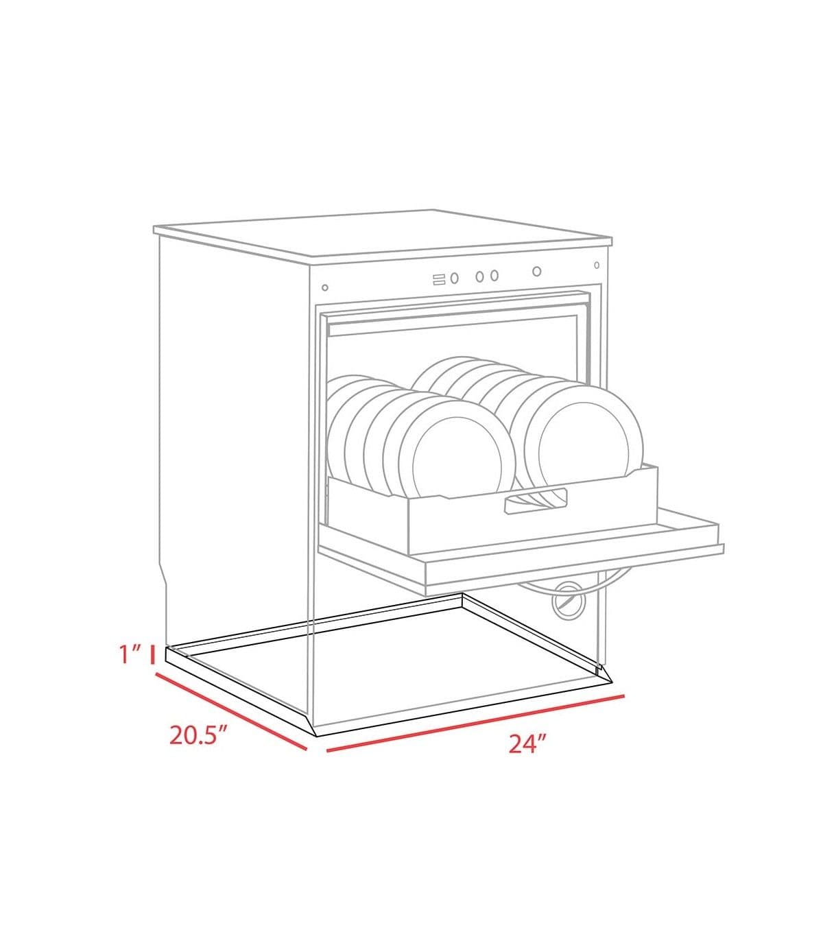 Dishwasher Leak Pan - 20.5" D x 24" W x 1" H - Flat Black