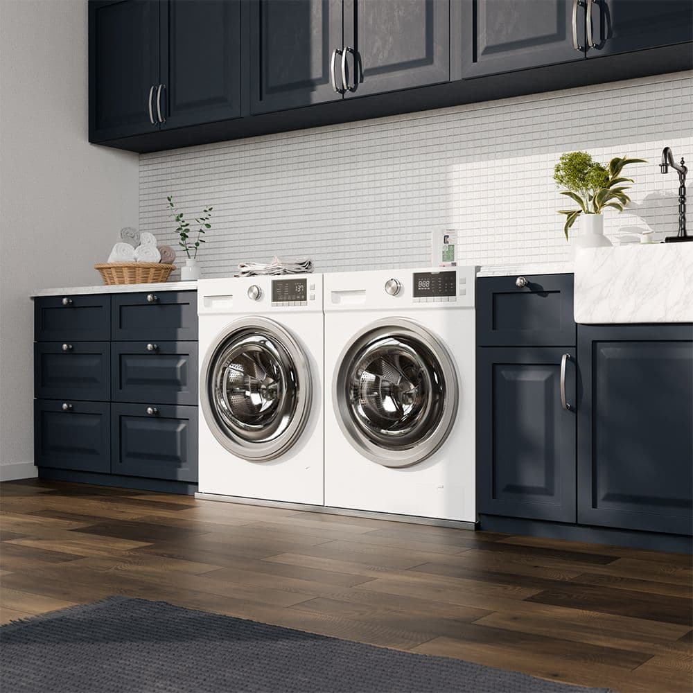 This Front Load Washer Drip Pan is designed with a tapered wall height that allows for opening of pedestal drawers or other door openings on the front of a washer appliance. The 56 inch length on this Double Front Load Washer Tray is long enough to fit 2 washers side by side for a single spill containment solution. Whether covering 2 dual stacked configurations or to have the tray extend to contain both washer and dryer, this Double Front Load Washer Tray is a great solution for you.