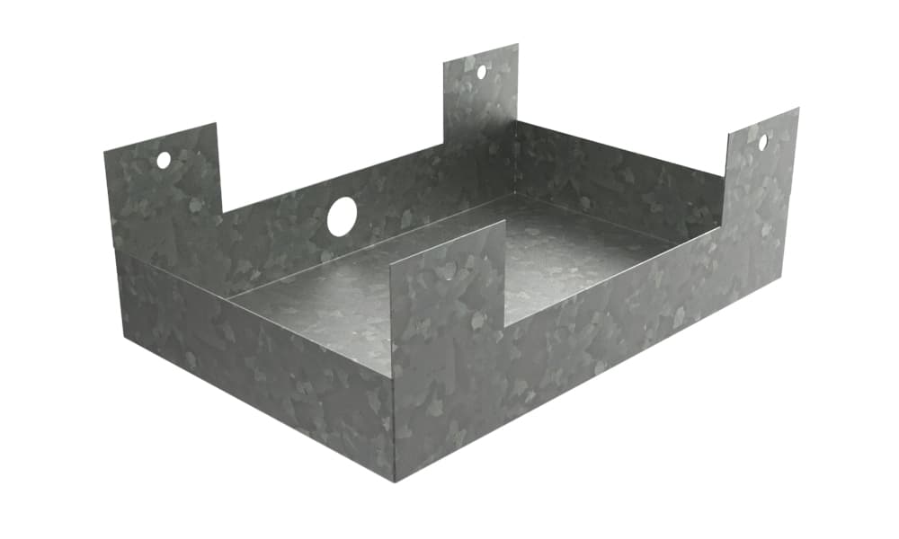 When the roof is leaking don't run away squeaking. A suspended drip tray is the solution to all your woes. This galvanized drain pan is fitted with hanging tabs to allow for suspended spill containment and drainage. Our Hanging Drain Pan is made with fully welded corners and hemmed edges for added strength. Material options are stainless, galvanized, aluminum or cold rolled steel.