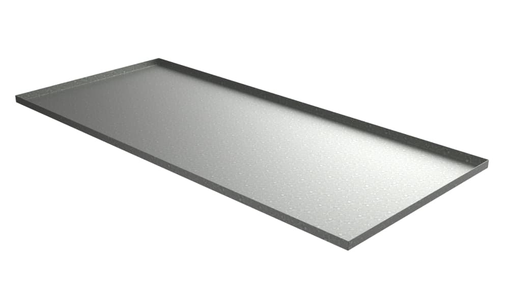 This large drip pan is designed to serve as spill control for a hydraulic stand. The pan is made from heavy gauge steel material for strong construction and durability. If you have a big drop pick up this big pan. Our Hydraulic Stand Drip Pan can stand up to hard jobs! Our Hydraulic Stand Drip Pan is made with fully welded corners and hemmed edges for added strength. Material options are stainless, galvanized, aluminum or cold rolled steel. If your situation has a constant flow requirement click the Request a Quote link below to get information on a custom tray.