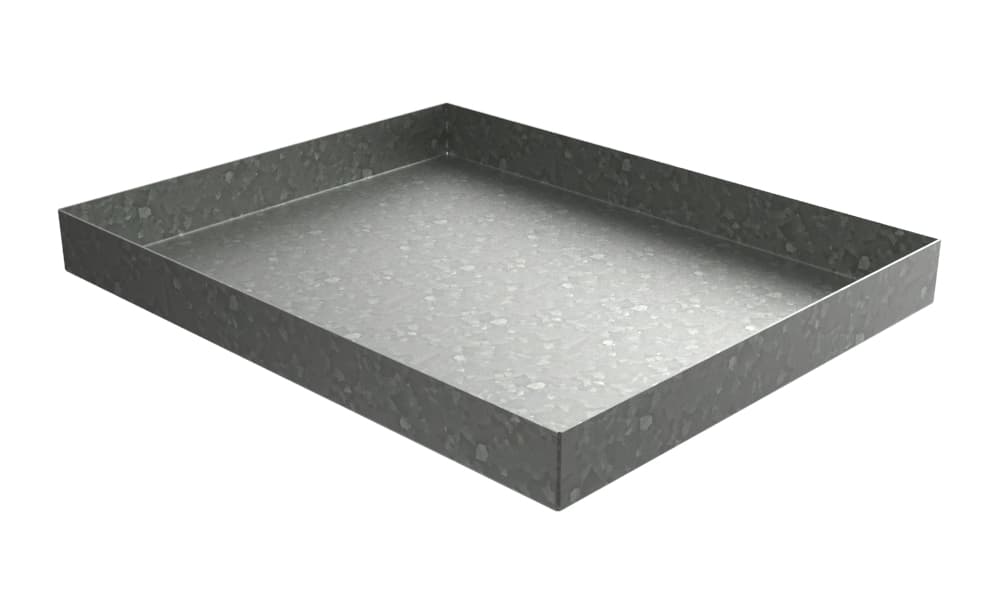 This heavy duty drip pan is designed to provide spill containment on a hydraulic unit. Perfect for the tough conditions of a production environment this Hydraulic Unit Drip Pan will stand up to the difficult tasks presented. This Hydraulic work pan is made of heavy gauge galvanized steel for strong construction and corrosion resistance.