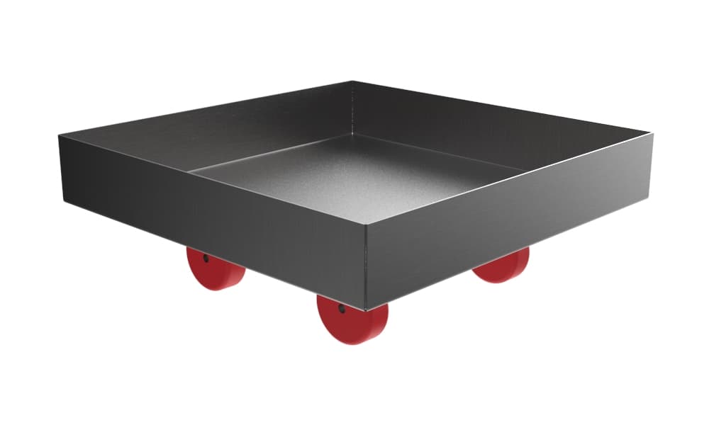 This Small Rolling Drip Pan is perfect for those small, light spill containment jobs around the home or office. The pan is just 1 foot square so it will fit in tight spaces. The stainless steel material used to make the pan gives it corrosion resistance. Use this Metal Rolling Drip Pan inside and outdoors. Our Small rolling Drip Pan is made with fully welded corners and hemmed edges for added strength. Material options are stainless, galvanized, aluminum or cold rolled steel. If your situation has a constant flow requirement click the Request a Quote link below to get information on a custom tray.