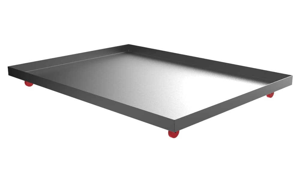 This is a Large Rolling Drip Pan made for large industrial duty spill containment. Rolling this behemoth around is sure to capture any size leak. Our Large Rolling Drip Pan is made of stainless steel to provide corrosion resistance and the pan comes with our No Leak Guarantee. This product is made with fully welded corners and hemmed edges for added strength. Material options are stainless, galvanized, aluminum or cold rolled steel. If your situation has a constant flow requirement click the Request a Quote link below to get information on a custom tray.