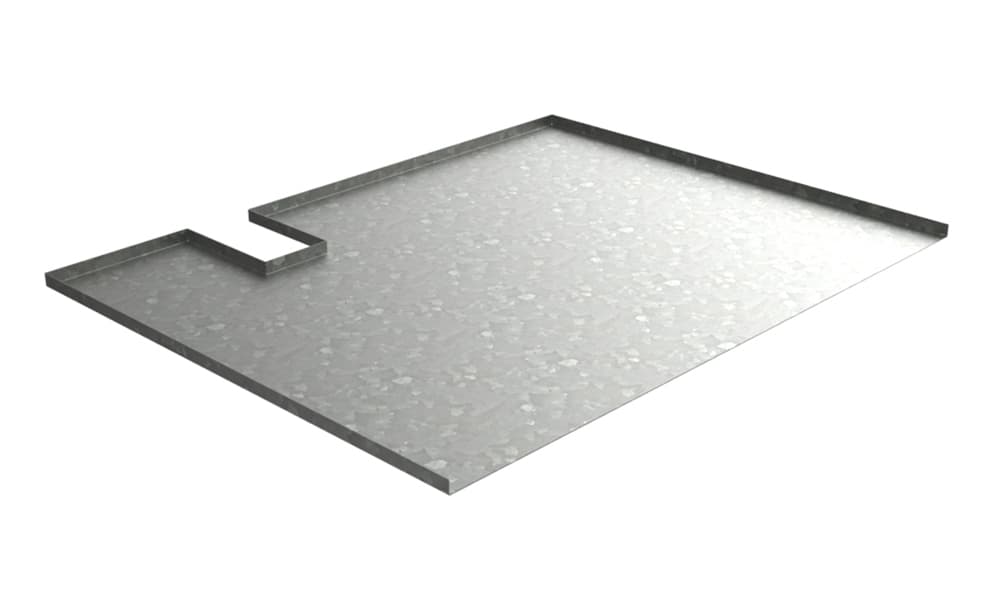 This is a customized pan used to protect cabinet interiors under a kitchen, bath or laundry sink. Leaks from sinks and plumbing inside of cabinets can remain hidden long term which allows for the water or even waste coming out of the sink to decay and rot cabinet interiors. Our Under Sink Drip Trays provide a layer of corrosion resistant metal between your cabinet and the dripping sink or plumbing. The pan is designed with a open front that allows the water to escape out the front of the cabinet, thus making you aware that a leak exists. Don't let your investment rot away, work with Killarney Metals to create an Under Sink Drip Tray that is just right for your application.
