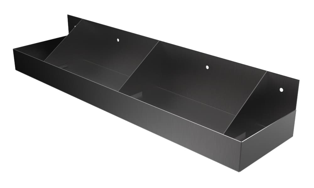 This Small Wall Mount Drip Pan is designed to a vertical service allowing you to catch drips or other unwanted fluids from wall mounted equipment. This drip pan set up is excellent for indoor hose reels or oil containment jobs. The Wall Mounted Drip Pan is reinforced by gussets spaced throughout the length of the pan. Mounting holes are provided in the back flange to fix the drip pan to the wall.Our Small Wall Mounted Drip Pan is made with fully welded corners and hemmed edges for added strength. Material options are stainless, galvanized, aluminum or cold rolled steel. If your situation has a constant flow requirement click the Request a Quote link below to get information on a custom tray.